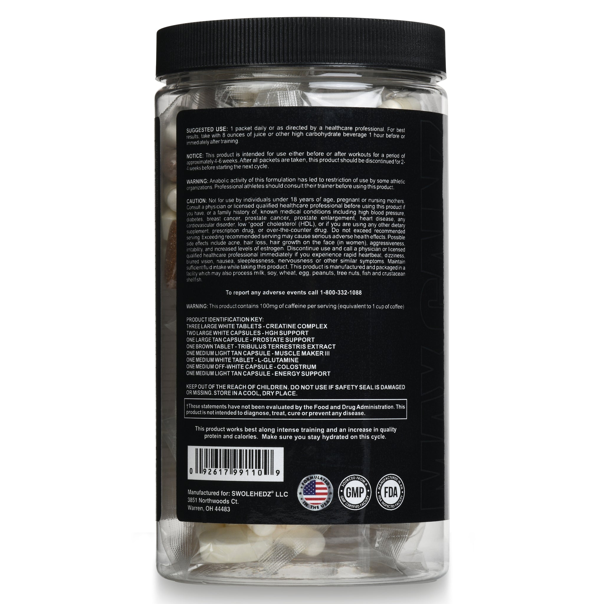 SWOLEHEDZ® MAX GAINZ™ STACK is a level up from our original stack!  This clinically tested all-in-one stack is specifically designed to promote an anabolic state in the body with natural ingredients, which supports strength, performance and muscle mass in men and women.
